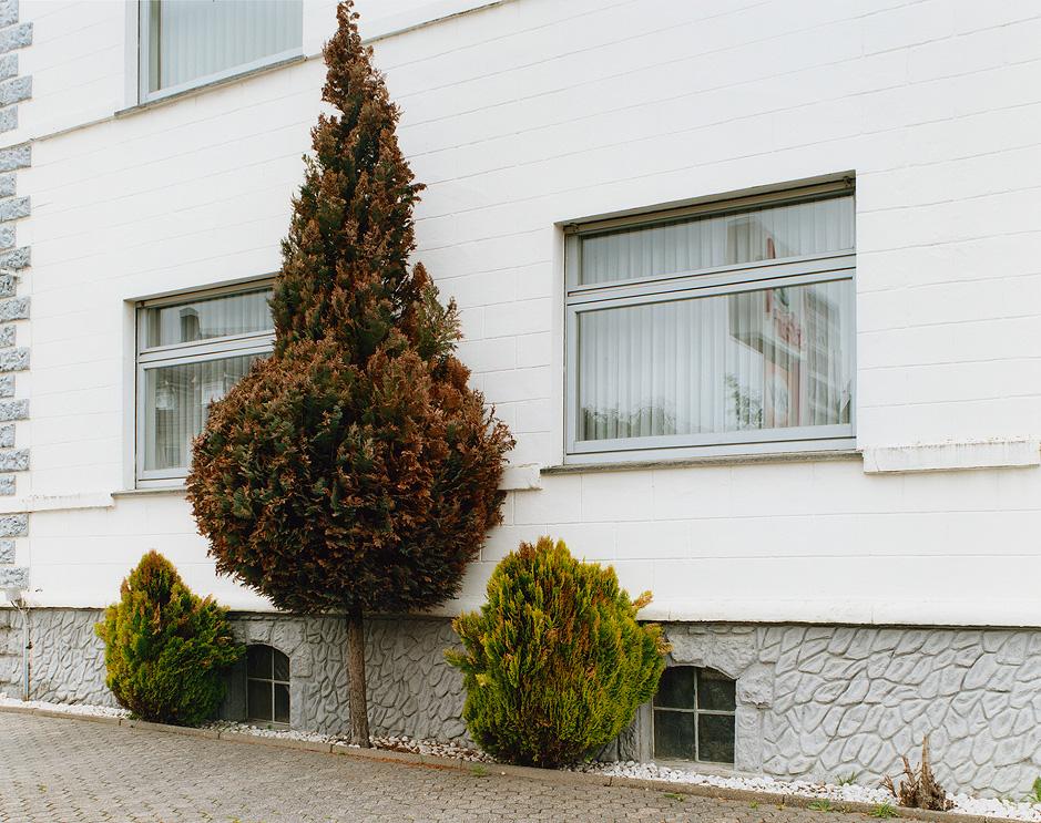 Klinkerbauten und akkurat geschnittene thujahecken: